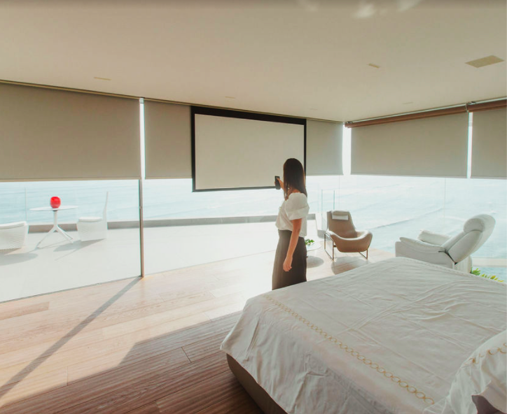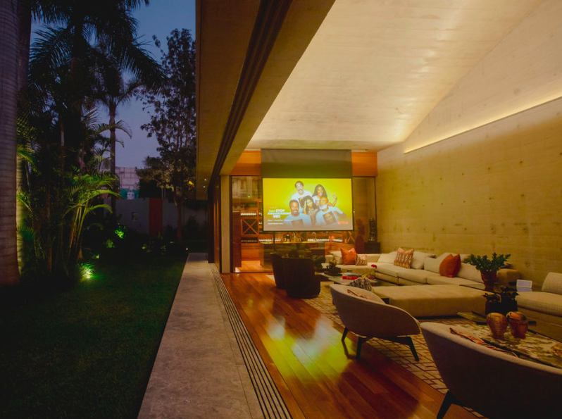 Finalmente, programamos las pantallas como parte del sistema de control para que se enciendan y aparezcan de manera automatizada a la par que se apagan las luces, enciende el proyector y bajan las cortinas. Todo ocurre de manera mágica, con sólo presionar un botón. ¡Nunca fue tan fácil ver una película!