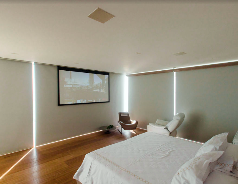 Para las pantallas, nuestra modalidad favorita es camuflar por completo, pantallas retractiles motorizadas en techos, cielo razo, ranurados, rejillas, muebles e incluso hemos llegado a intervenir rieles invisibles para cortinas y rollers.