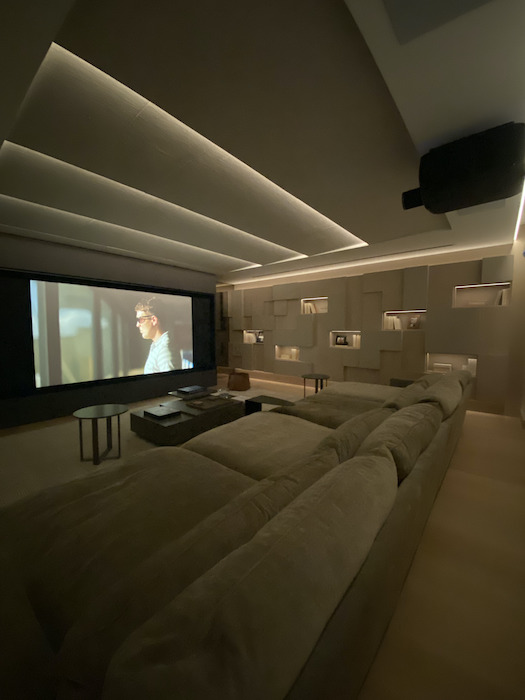 M: La estética es parte clave de nuestro trabajo. Cuidar la estética es nuestro sello y si el cliente lo requiere hacemos todo: diseñamos los muebles, elegimos el piso o alfombra, vemos detalles de los techos, cortinas. Trabájanos con los sofás de cine más cómodas del mundo. Es en serio los mandamos a hacer a medida a Bélgica, con los planos de nuestro espacio. Elegimos la tela o el tipo de cuero, los modelos, les incluimos el requerimiento que el cliente quiera: que caliente la espalda por ejemplo, que se recline 100%, asientos dobles, etc.